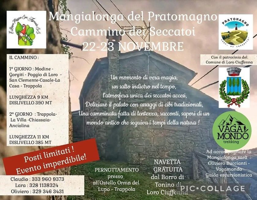 Un weekend di magia, profumi e sapori autentici nel cuore del Pratomagno con due giorni di cammino tra borghi, seccatoi accesi e assaggi di piatti tradizionali, accompagnati da musica e racconti che scaldano il cuore